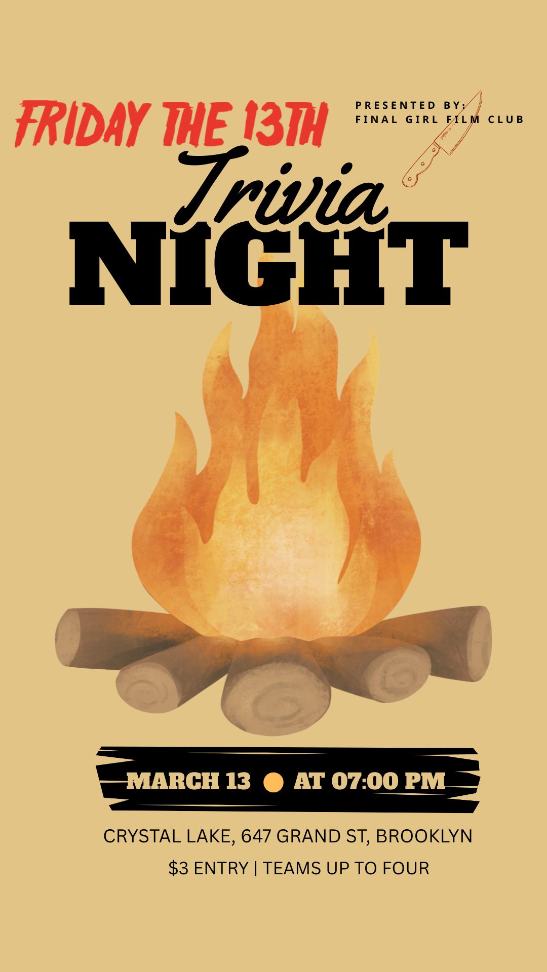 7PM – 9PM Friday, March 13th @ Crystal Lake Bar 647 Grand St. Brooklyn