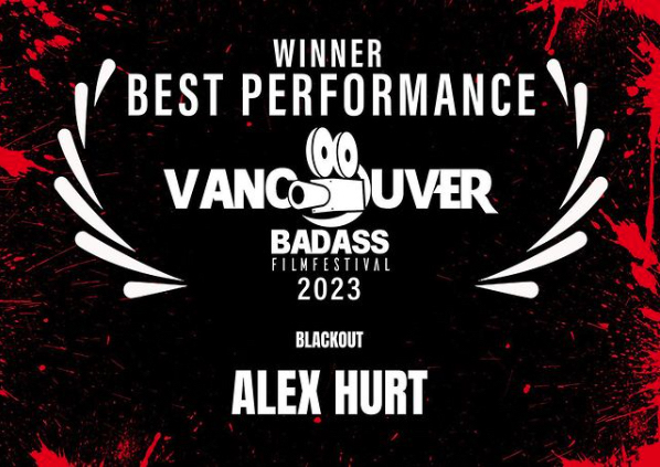 Alex Hurt wins best performance for BLACKOUT at the Badass Film Festival in Vancouver