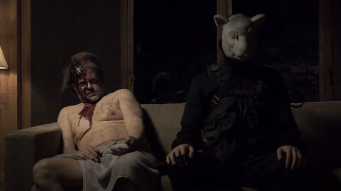 The ominous opening piano chords leading into the groovy celebration of unbridled optimism that is Dwight Tilley’s “Looking for the Magic” almost make it a perfect companion to the jet black comedy throughout Adam Wingard and writer Simon Barrett’s You’re Next. Otherwise, the 1977 tune is effectively juxtaposed into two scenes from the brutal and brilliant 2011 home invasion thriller – first in the cold open featuring horror icon Larry Fessenden as Erik Hanson and second when Kelly (Margaret Laney) runs toward Harson’s house (where the song has apparently been playing on repeat this whole time) only to fall prey to one of the masked assassins targeting her family.