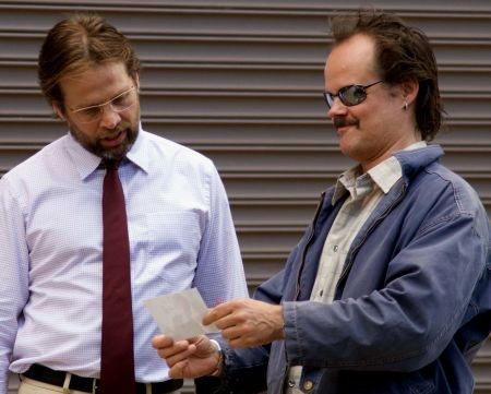 On my first three films I focused entirely on writing and working with the actors. The logistical challenges on BITTER FEAST forced me to focus more on what the camera was doing, special FX, stunts, etc. I was extremely fortunate then to have James LeGros leading our cast. James showed up with the entire script memorized and an entire life, complete with verbal tics and a special little strut, worked out for Peter Grey. Ditto for Joshua Leonard, Amy Seimetz, John Speradakos and of course the ineluctable Larry Fessenden as private investigator Bill Coley.