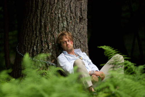 I mention this not because Bitter Feast is one such film, but because that may be the type of film people are expecting from a plot that revolves around a chef, Peter Gray, (James LeGros) who exacts revenge on the food critic, JT Franks (Joshua Leonard), whose perpetually scathing reviews of his meals have finally cost him a career as a celebrity chef. So Peter kidnaps JT, takes him to his isolated house deep in the woods, and makes the blogger pay for all the bad reviews he’s written over the years. Combine a plot like that with the current state of the genre and it’s oddly natural to expect Peter to break out a pair of pliers and turn JT’s body into a canvas of pain. What he actually does is, in a lot of ways, worse.