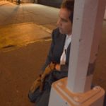 Waiting for my wingman at the very bottom of Broadway. This route was once a game trail that wild animals ran on, then a hunting path for indians, then a muddy dirt road for the white man. Now this. It would be so easy to not do this. I’ll bet the guy who walked on a tightrope between the twin towers felt that way. But what he did was so brave, so exciting and risky. It was the opposite of this. Can crawling be brave? I am crawling from the bottom of this island all the way up Broadway to my home in Washington Heights? Why am I doing this? Suddenly I can’t remember.