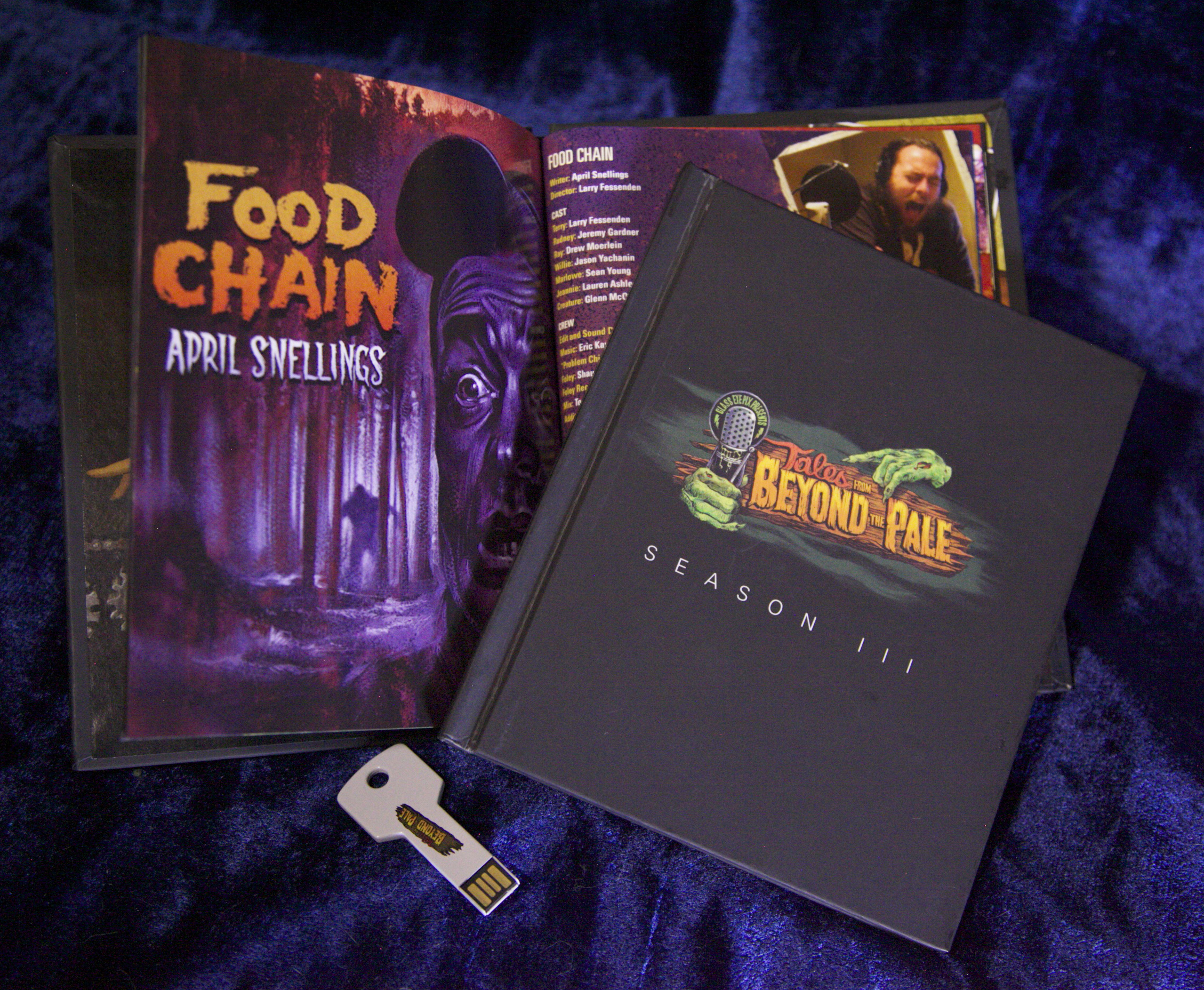 If you’re brave enough to subject yourself to these horrors (exercise caution if you’re thinking of binge-listening… seriously, it’ll break your brain), you can download individual episodes, or a complete Season 3 bundle via the TALES web store. It’s also available as a flash drive bundle with limited-edition book, containing all the awesome poster art by Graham Humphreys and many more goodies. More audio formats are coming soon, so stay tuned!