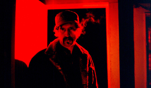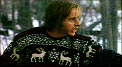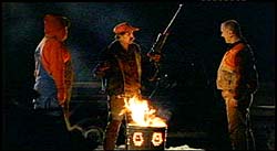 HENRY SHEEHAN: This is his third horror film. He, the only, he made one called, Habit, which I saw, and which was also very good. It takes place among drug users in New York City. And, he’s kind of like George Romero. Not that his films are like that, but that he’s chosen to work in a specific geographic area. In this case, New York City, in New York state, and make films his way. And, he makes, kind of, ghost stories, the old-fashioned way. There’s a lot of inference, you know, there aren’t too many onscreen monsters, or blood-letting, but it’s really spooky. And, this starts off, they’re driving down a dark, lonely country highway, they’re lost, and all of a sudden a deer crosses the road, and they kill it. Okay, they hit it, and kill it, which is bad enough, ’cause the car ends up in a snow bank. Well, who shows up but three local hunters, with big rifles. And, one of them is really mad because, not only has this couple, George, is the husband’s name, killed the deer they’ve been hunting for eighteen hours, but he’s broken one of the antlers, or points, which, you know, was going to look really good on the wall of one of the hunters. And, the hunter’s name is Otis. And, here’s part of the confrontation they have.