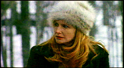 The start of the film evokes the start of Kubrick’s THE SHINING, with the sight of a family in a car, driving through a snowy wilderness. Patricia Clarkson and Jake Weber are Kim and George, and Erik Per Sullivan (Dewey on MALCOLM IN THE MIDDLE) is their son Miles. Hes seated in the back, lost in his fantasy wrestling match between a pair of action figures, a Shogun Warrior and the Wolf Man. Theres a dreamy, languid quality to these opening moments, shattered when George runs into a deer that darts out into the road in front of them. Its sudden, shocking, and the car is sent into a skid that takes it off the road. George gets out of the car to investigate and sees that the animal is still alive, still twitching. Before he can decide what to do about it, three hunters with rifles come running up, and a confrontation unfolds. One of the hunters, Otis (played with a nice sense of restraint by John Speredakos) goes ballistic when he realizes the antler on the buck is cracked. Kim, in turn, freaks out when Otis finishes the deer off with a pistol not ten feet from their car, in plain view of Miles. It’s clear from the start that we’re dealing with two radically different world views here, and the collision causes instant friction.