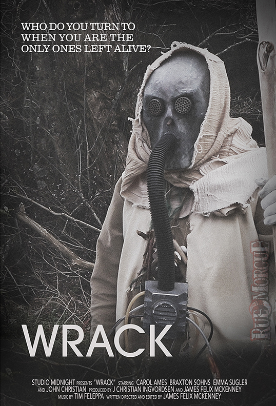 Writer/director James Felix McKenney gave us the scoop that he’ll be releasing his latest feature WRACK through his Channel Midnight Releasing label this summer, making it available on both streaming and Blu-ray. Produced by McKenney and indie genre veteran J. Christian Ingvordsen (BLUE VENGEANCE, BOG CREATURES), it stars Carol Ames, John Christian, Braxton Sohns, Emma Sugler, and Jennifer Boutell and was shot in Delaware County, New York for less than $1,500. McKenney recycled wardrobe and props from AUTOMATONS and Glenn McQuaid’s I SELL THE DEAD, and created a fictional language for his masked characters, who are subtitled in English. The synopsis: “WRACK takes place in the distant future, centuries after nearly all life has been wiped out by war, disease, and environmental collapse, and focuses on the planet’s four remaining survivors who struggle to get along with each other even more than they do to survive.”
