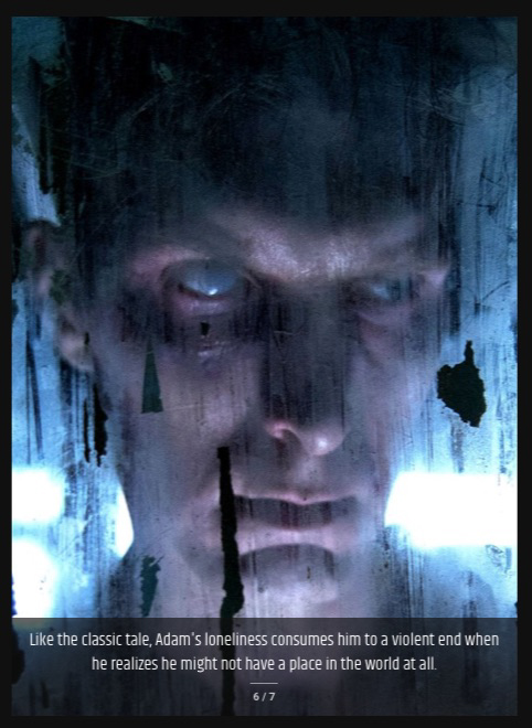 The final sequence of Depraved is narrated by Adam, who explains how he has to live his life on the run, since he’s being hunted by police after he kills Polidori and was framed for other murders he didn’t commit. He speaks of loneliness, how he doesn’t have anyone, and how he must figure out the intricacies of the world without a father’s guidance.