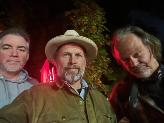 Kevin Corrigan, James Le Gros, Fessenden on the set of BLACKOUT